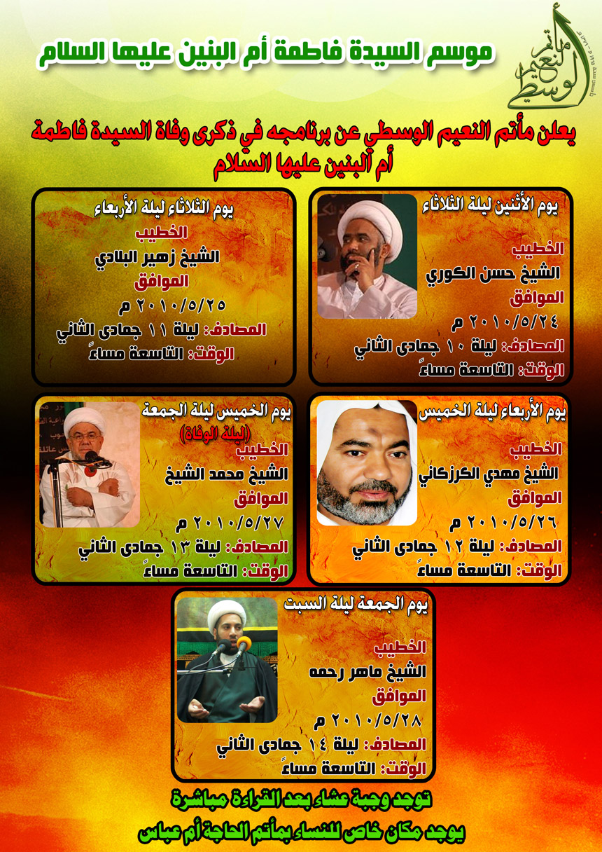 >> [ مــوســم أم الـبـنـيـن ( ع ) فـي مــأتم الـنـعــيـم الـوســطــي ] <<