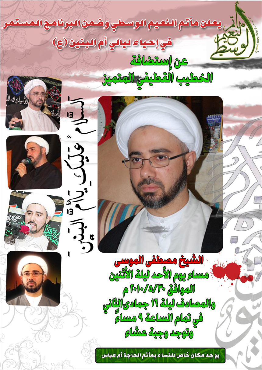 إستمرارا ً لليالي أم البنين ((.. الشيخ مصطفى الموسى القطيفي ..)) مأتم النعيم الوسطي