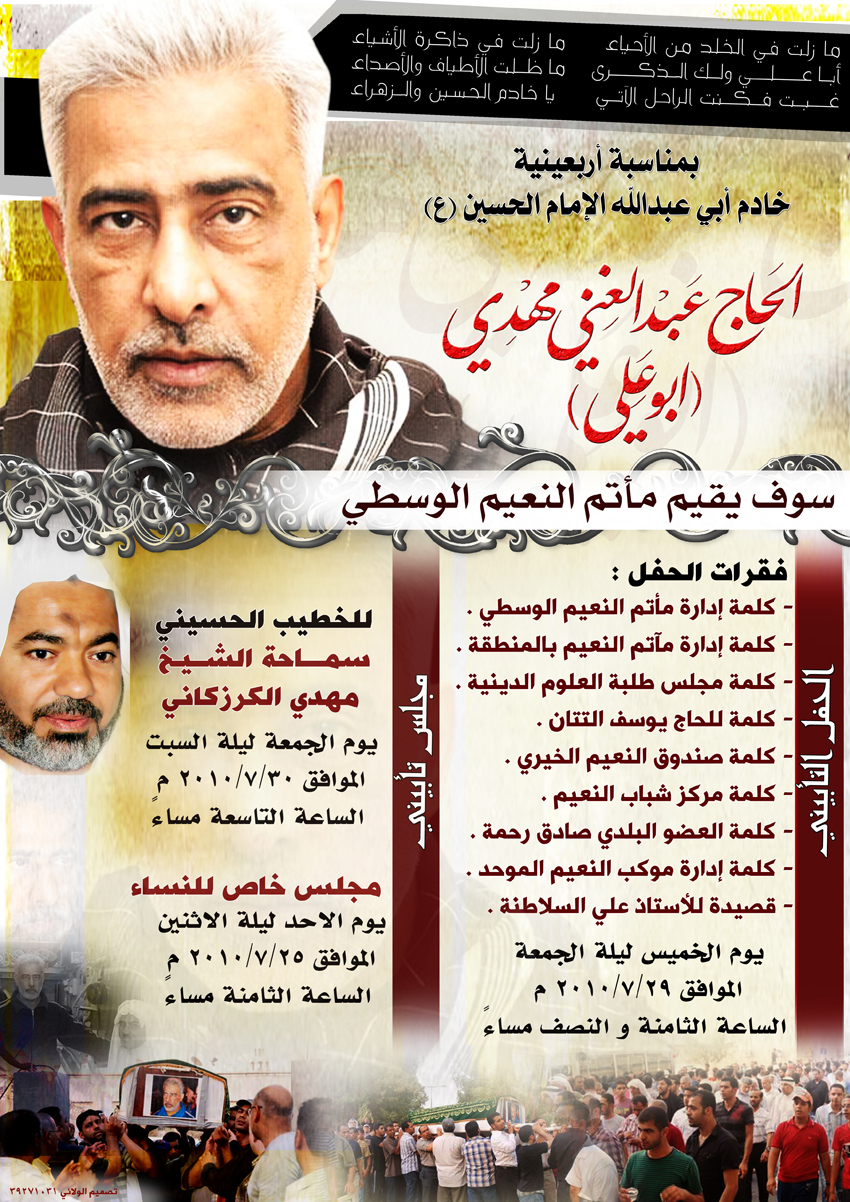 برنامج أربعينية خادم الحسين (ع) الحاج عبدالغني مهدي في مأتم النعيم الوسطي