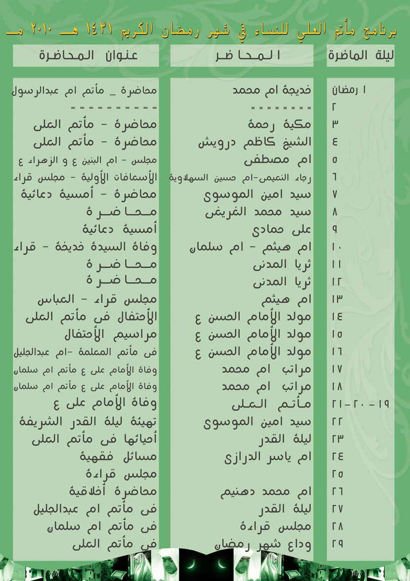 بـرنـامج مـأتـم الـعـلـي للـنـساء في شـهـر رمـضـان الـكـريـم 1431هـ 2010 م