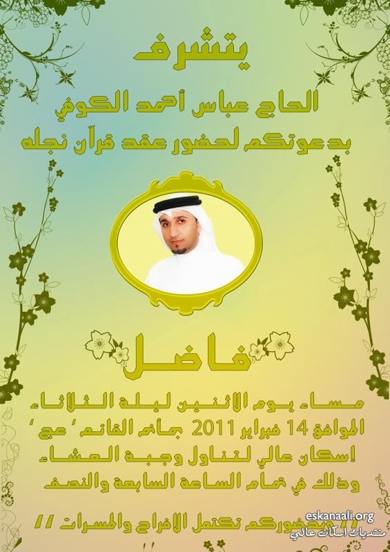 تدعوكم عائلة الكوفي لعقد قران نجلها " فـاضـل "