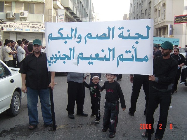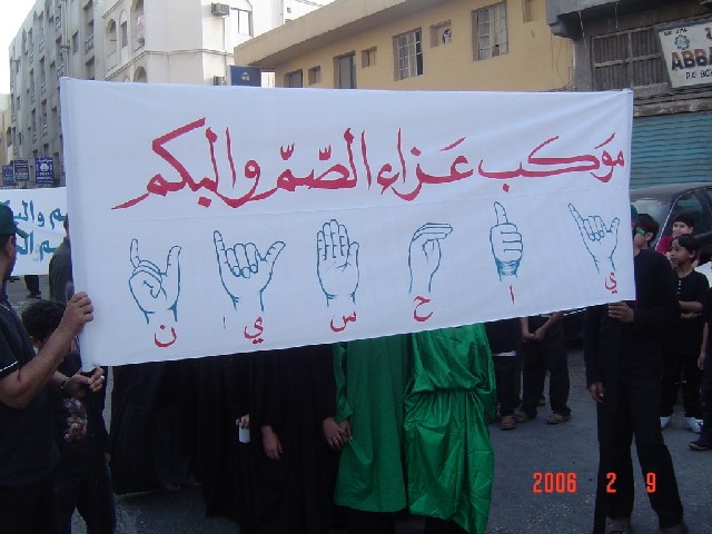 انطلق موكب عزاء الصم والبكم في البحرين لعامه الثاني على التوالي  من مأتم النعيم الوسطي لهذا العام ،الساعة الثانية ظهرا من يوم العاشر من محرم 1427هج، حيث شارك أكثر من 50 معزياً من الصم والبكم يرتدون قميصاً أسوداً وقبعة خضراء كزي موحد، معبرين عن حزنهم ومعزين آل بيت النبي (ص)  في مصابهم ابا عبد الله الحسين (ع)..   وقد تم تطوير الموكب لهذا العام عن سابقه بإضافة بعض الشخصيات التمثيلية لواقعة الطف في الموكب ، بالإضافة لذلك إستحدثت طريقة جديده لتساعد الصم على اللطم المنتظم بالإضاءة (فلاش) لسهولة وسرعة رؤيته .